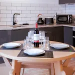 料理をしたい方のために、この寝室1室のアパートは自家製の食事を用意できる設備の整った台所を用意しています。 くつろげる場所としてテラスもあります。